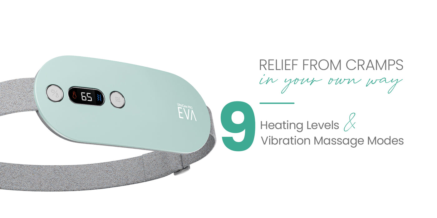 1. Heating Therapy| It consists of 9 heating levels that relax muscles and increase blood flow in the affected area which aids in easing cramps and tension commonly experienced during menstruation.